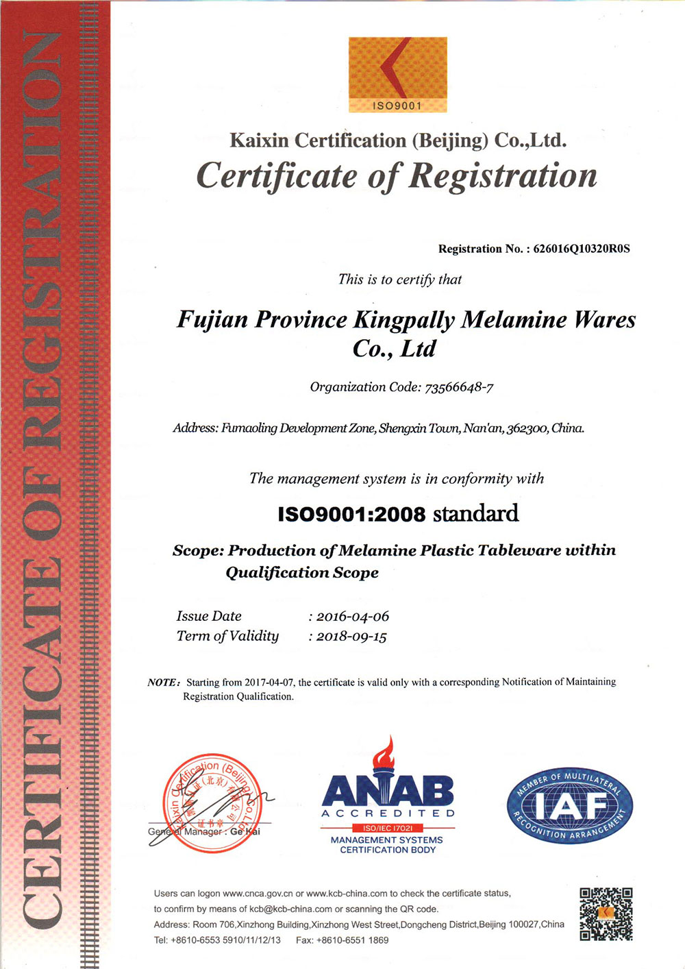 Fujian Province Kingpally melamine wares Co., Ltd. established in 1992, which is an export-oriented industry and trade integration tableware enterprises, mainly produces melamine tableware. Enterprises covering 30,000 SM, production area of 20,000 SM, skilled staff of 258 people, the annual production capacity over 3500 tons.
